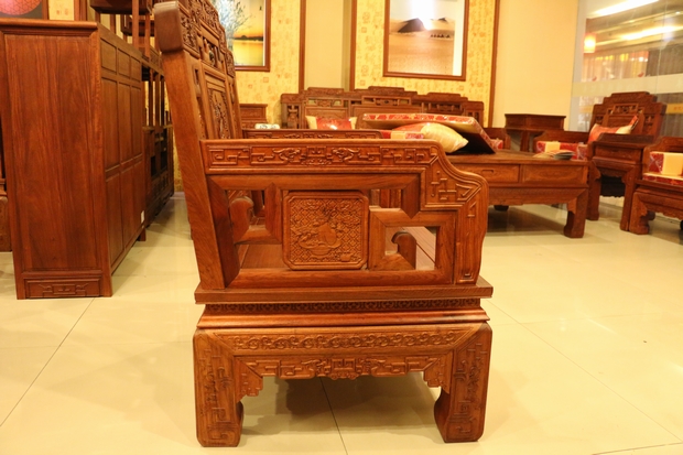 而今天,筆者要給大家介紹的這一款紅木家具沙發(fā)——福臨門沙發(fā),正是一款為了表達(dá)人們這一初衷和愿望,用以其承載美好的向往和精神寄托的上等紅木沙發(fā)。該款沙發(fā)同樣采用的是福林堂紅木所擅長(zhǎng)的優(yōu)質(zhì)緬花而制作,整體做工表現(xiàn)精良精湛,雕刻圖案豐富多樣,筆鋒縱橫飽滿有力,在沙發(fā)的正面,高幾、角幾各處以及小平幾的上方還刻畫了許多以昭示"福到"之意的優(yōu)美圖畫圖案,古人們神話故事傳說中的宏偉事跡等,用手輕撫摸之,給人以身臨其境之感,畫面代入感極其強(qiáng)烈,可以感受到,那畫筆縱橫交錯(cuò)的洶涌的海水,蜿蜒有秩形態(tài)各異的各種古器法寶圖案,還有那原木所自帶散發(fā)出來的淡淡的清香,古樸而讓人難以釋懷忘卻。